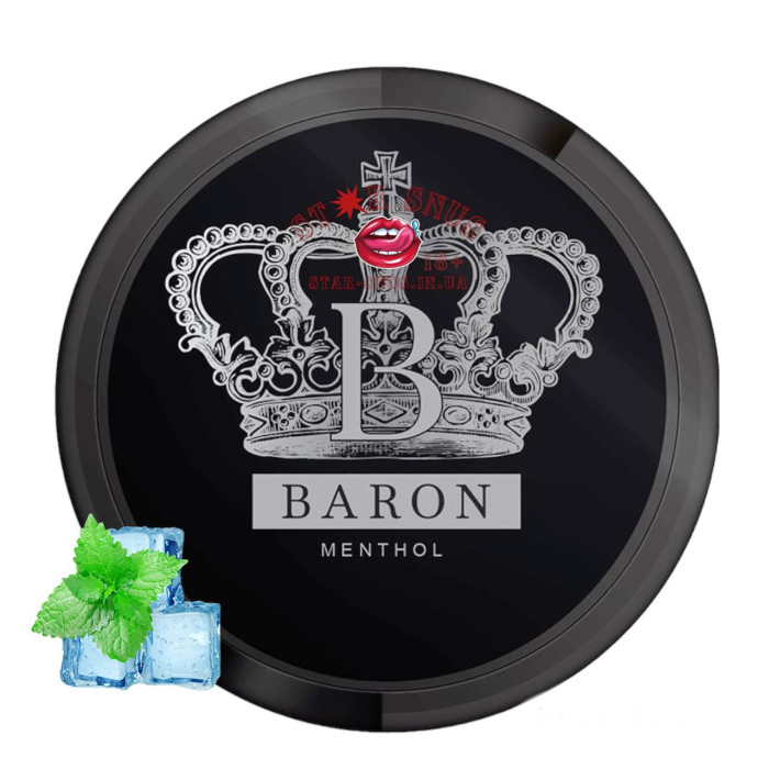 Барон Ментол имеет очень интенсивный вкус холодного ментола и мяты. Средняя влажность Барона позволяет мешочку длительное время оставаться под губой и равномерно высвобождать вкус и никотин. Благодаря чрезвычайно высокому содержанию никотина - 50 мг/г - Барон Ментол предназначен для абсолютных курильщиков. Снюс для использования профессионалами. Одна коробка содержит 20 пакетиков популярного формата Slim.