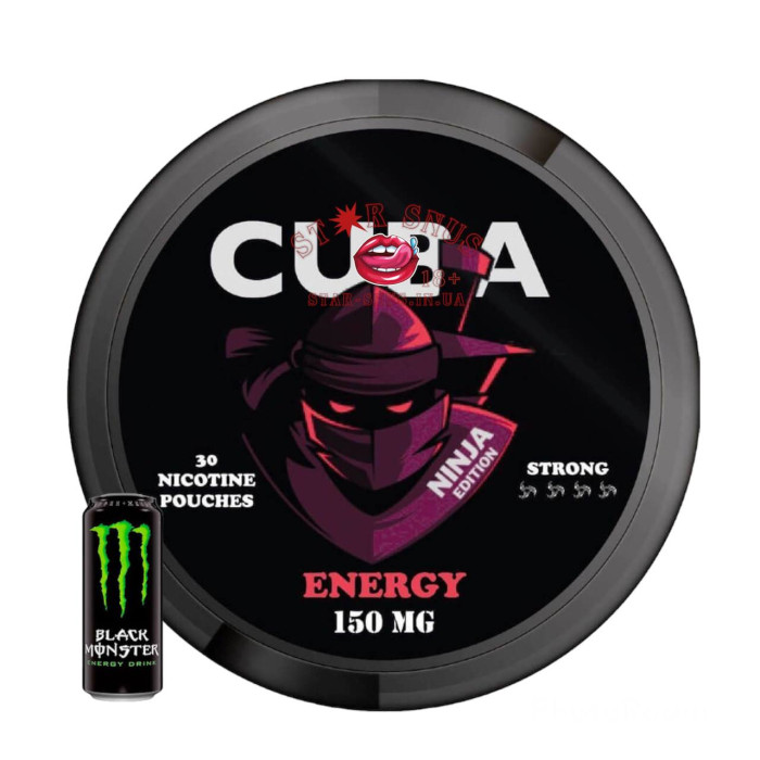 Cuba Ninja Energy - снюс крепостью 150 мг со вкусом энергетического напитка Ред Бул. Куба ниндзя энерджи уже доступен для заказа в Украине. Это единственный крепкий снюс в Украине, который можно сравнить со снюсом Фафф, к которому все пользователи так привыкли за короткий промежуток времени. В пакете шайбы снюса Куба 150 мг аж 25 шт, что значительно больше, чем у других представителей Куба.