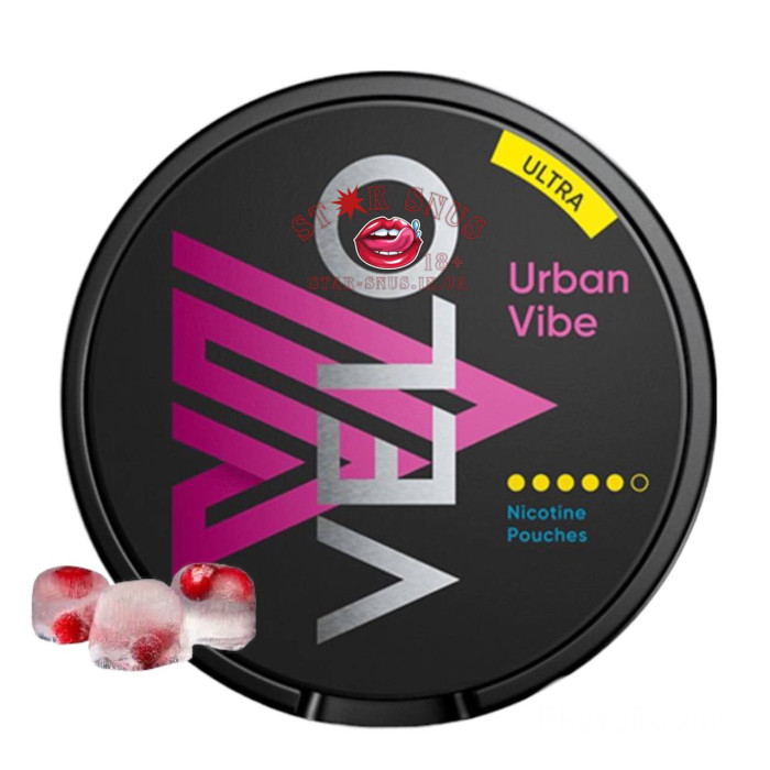 Вкус Velo Urban Vibe Ultra описывается как смесь клюквы и различных ягод. Для любителей ягод это лучший снюс. Этот снюс вело 5 точек не зря носит дополнение «Ультра». 18 мг/г никотина в сочетании с большими пакетиками обеспечивают надлежащий никотиновый удар. Благодаря большой форме пакетика, количество никотина на один никотиновый пакетик значительно больше и сильнее, чем обычно.